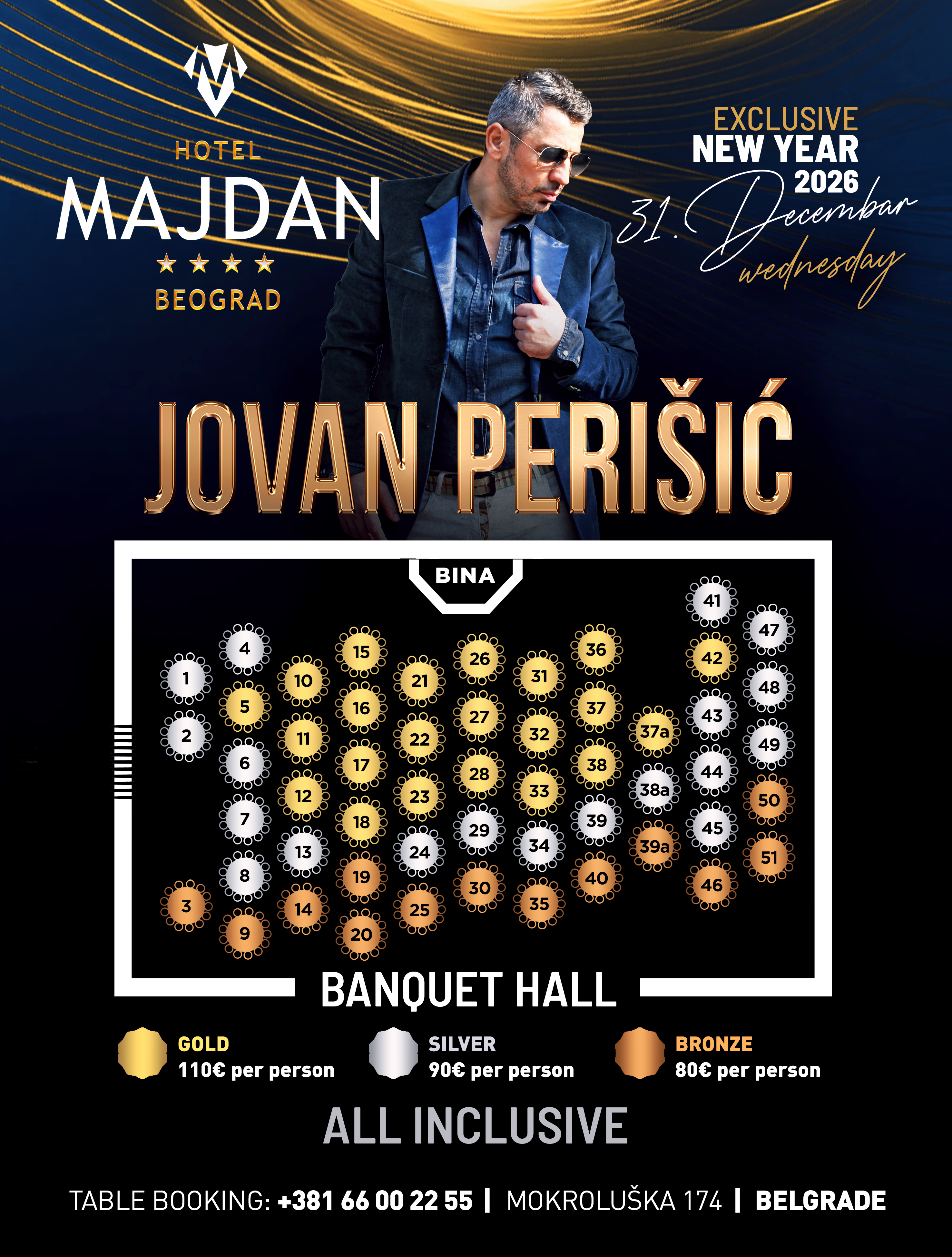 U priloženoj ponudi možete pogledati cene u odnosu na poziciju stola prema bini.
